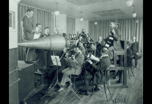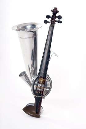 Von der Erfindung des Phonographen durch Thomas Alva Edison im Jahr 1877 bis zur kommerziellen Nutzung der Tonträgertechnik für Schallplatte und Radio waren viele Hindernisse zu überwinden. Eines bestand in der Schwierigkeit, im akustischen Aufnahmeverfahren den ungerichteten Klang von Streichinstrumenten einzufangen, insbesondere wenn – wie im Orchester unvermeidlich – die Musiker in einiger Entfernung zum Aufnahmetrichter platziert waren. Um diesem Problem abzuhelfen erfand Johannes Matthias Augustus Stroh um 1900 in London die nach ihm benannte Stroh-Geige, ein Instrument, das die Schwingungen der Saiten auf eine Membran überträgt und über einen Schalltrichter verstärkt als gerichteten Schall an die Umgebung abgibt. Dadurch war es möglich mit der Violine – wie mit einer Trompete – gezielt in Richtung des Aufnahmetrichters zu spielen, was die Lautstärke des so eingefangenen Tons deutlich verbesserte. Da die Klangqualität der frühen Trichteraufnahmen ohnehin bescheiden war, fiel der etwas hohle, flötenartige Klang der Phonogeige kaum unangenehm ins Gewicht. Strohs Werkstatt fiel 1909 an George Evans, der sich im Jahr darauf die Bezeichnung „STROVIOLS“ als Markenzeichen schützen ließ; aus seiner Produktion stammt unser Instrument, das zusätzlich zum Haupttrichter einen kleinen Trichter für die Tonkontrolle durch den Spieler aufweist. Mitte der 1920er Jahre versuchte der Markneukirchener Ingenieur Willy Tiebel eine konstruktive Verbesserung, die 1928 auch ein neues Patent erhielt. Diese „Tiebel-Radio-System-Violine“ kam jedoch historisch zu spät: Mit der 1925 erfolgten Einführung von Mikrofonen stieg die Aufnahmequalität sprunghaft an, wodurch Phonogeigen obsolet wurden. Heute wird das Instrument noch in gewissen Gegenden Osteuropas sowie gelegentlich in Folk- und Jazz-Musik verwendet.